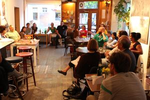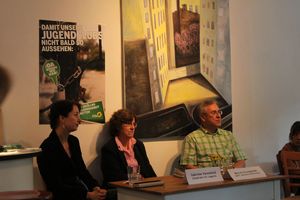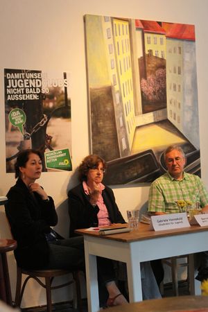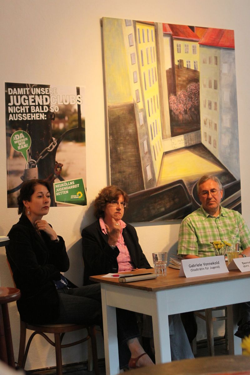 Am Montag, den 15. August 2011, fand in der <link http: werkstadt-berlin.com _blank external-link-new-window>WerkStadt Berlin in der Emserstraße 124 ein weiteres grünes Kiezgespräch zur <link http: www.gruene-neukoelln.de jugendarbeit.html external-link-new-window>Situation in der Neuköllner Jugendarbeit nach den durch die SPD initiierten Kürzungen statt. Über die willkürlichen Haushaltssperren im Jugendressort, durch die kommunale Einrichtunge kaputt gespart und kompetente Sozialarbeiter_innen aus dem Bezirk vertrieben werden, diskutierten die Neuköllner <link http: www.gruene-neukoelln.de wahlen-2011 kandidat-innen-fuer-den-bezirk gabi-vonnekold.html external-link-new-window>Jugendstadträtin Gabi Vonnekold und <link http: www.gruene-neukoelln.de wahlen-2011 kandidat-innen-fuer-den-bezirk bernd-szczepanski.html external-link-new-window>Bernd Szczepanski, der BVV-Fraktionsvorsitzende von Bündnis 90/Die Grünen Neukölln, mit interessierten Anwohner_innen. Moderiert wurde das Gespräch von <link http: www.gruene-neukoelln.de wahlen-2011 direktkandidat-innen dr-susanna-kahlefeld.html external-link-new-window>Susanna Kahlefeld, der grünen Direktkandidatin im Wahlkreis 2.