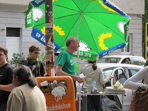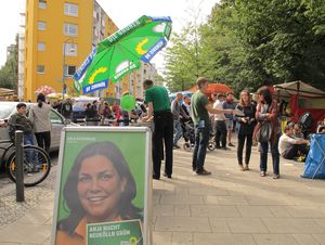 Jeden Dienstag und Freitag ist bekanntermaßen Markt am Maybachufer - und genauso regelmäßig ist unsere Abgeordnete und Direktkandidatin für den Neuköllner Wahlkreis 1 <link internal-link internal link in current>Anja Kofbinger dort anzutreffen.