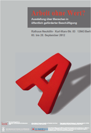 In dieser Ausstellung, erstellt durch das Nachbarschaftsheim Schöneberg e.V., werden lebensgroße Fotoinstallationen von Menschen gezeigt, die in verschiedenen Beschäftigungsprogrammen tätig waren oder sind. Sie leisten gemeinnützige, "zusätzliche" Arbeit in Schulen, Jugendeinrichtungen, Kitas, in Nachbarschaftshäusern oder in der Pflege.