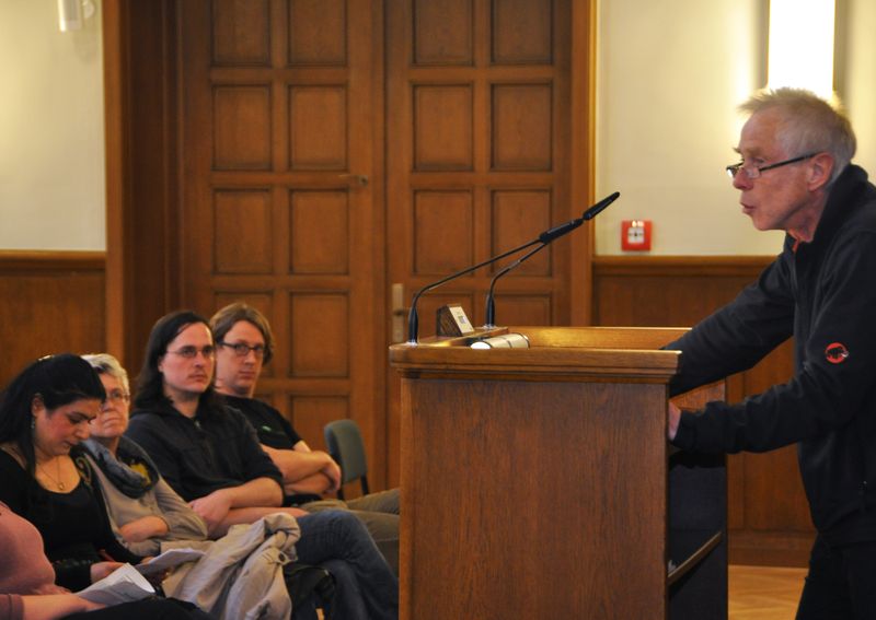 Auch Jürgen Schulte von der Nachbarschaftsinitiative „Hufeisern gegen Rechts“ kritisierte den Umgang mit Flüchtlingen in Deutschland und Berlin. Schulte verwies auf den sozialen Rechtsstaat, der entgegen seiner Grundprinzipien die Fluchtgründe der Menschen in Frage stelle, den Schutz der Menschen kontinuierlich beschneide und sie zu Bürger_innen zweiter Klasse mache. Es seien tief verwurzelte Vorurteile, die ein solches Handeln legitimierten, erklärte Schulte. Das Gefühl der sozialen Unsicherheit unter den Bürger_innen werde genutzt um Sozialneid zu erzeugen, gegenüber Menschen, die noch weniger besitzen. „Es gibt keine berechtigten Ängste der Bewohner gegenüber Flüchtlingen. Es gibt Vorurteile, aber die sind keinesfalls gerechtfertigt“, stellte Schulte klar.