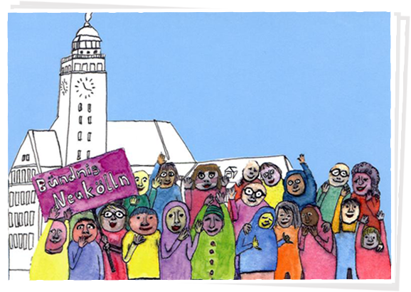 Für weitere Infos und Kontakt wenden Sie sich an das <link http: www.buendnis-neukoelln.de informationsveranstaltung-zur-geplanten-fluchtlingsunterkunft-in-der-karl-marx-strase-269-am-12-februar-19-00-uhr _blank external-link-new-window externen link in neuem>Bündnis Neukölln.