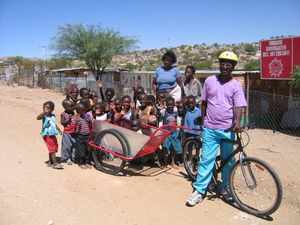 Was hierzulande nicht mehr brauchbar erscheint, wird in Windhoek, Hauptstadt von Namibia und Partnerstadt Berlins, dringend benötigt: Dort leben viele Menschen an den Stadträndern, den ehemaligen Townships, die mit alten Fahrrädern ihre Mobilität deutlich verbessern können. Die Idee ist nicht ganz neu; der Verein Ben Namibia beispielsweise sammelt und verschickt schon seit längerem Fahrräder aus Europa und Nordamerika in das südafrikanische Land. Dort entsteht Stück für Stück eine neue Infrastruktur: Monteure werden ausgebildet, in kleinen Werkstätten werden die Räder repariert oder zu Transportgefährten umgebaut.