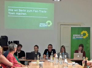 Christian Hoffmann, Mitglied der grünen BVV-Fraktion, stellt regelmäßig Anträge und Anfragen zum Thema Fairtrade (faire Sportbekleidung, faire Bewirtung im Rathaus, Dienstkleidung in Neukölln). Er hat dazu beigetragen, dass Neukölln Fair Trade Town wird. Seit Juni 2017 macht sich Neukölln auf den Weg dahin.