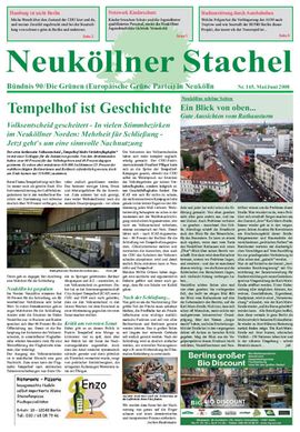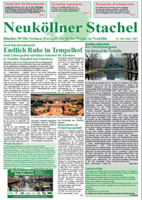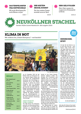 Endlich Ruhe in Tempelhof - Vertane Chance: Stadtgüter weden nicht auf Bio umgestellt - Grüner Vorstand neu gewählt - Ende des erfolgreichen Quartiersmanagement im Rollberg - Kinderschutz - Umbennung der Wissmannstraße - Neukölln im Widerstand - Klimawandel - Neuköllner Ehrennadel