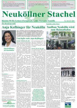Direktkandidatin für Neukölln: Anja Kofbinger - Saalbau Neukölln wird zum Heimathafen - Vorstellung der Berliner ListenkandidatInnen - Grüne Randnotizen aus der Neuköllner BVV - Stadträtin Gabi Vonnekold zum Kultur-Lotsen-Projekt - Halbzeitbilanz der Grünen BVV-Fraktion - Rotlichtviertel in Neukölln? - Clay-Sekundarschule auf Rudower Feld - Grüner New Deal für Arbeit - Gleichbehandlung in Bildung und Beruf: Chancen und Perspektiven - Nachruf Barbara Oesterheld - Deutsche Bahn fährt mit Höchstgeschwindigkeit am Fahrgast vorbei - Autoverkehr beruhigen und vermeiden - 5. Offene Afrika-Fußballmeisterschaft - Entwicklungsorganisation ONE Deutschland stellt sich vor