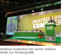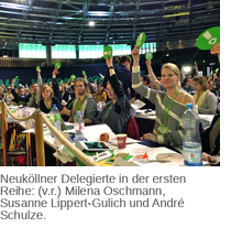 Die Neuköllner Grünen konnten bei den Punkten Integration und Soziales Akzente setzen. Viele Änderungsanträge wurden bereits im Vorhinein von der Antragskommission übernommen, so dass die Punkte nicht weiter im Plenum debattiert werden mussten. Andreas Audretsch, Mitglied im Vorstand der Grünen Neukölln, hielt eine starke Rede zur grünen Garantierente.