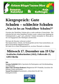 Einladung zum Kiezgespräch "Gute Schulen, schlechte Schulen"