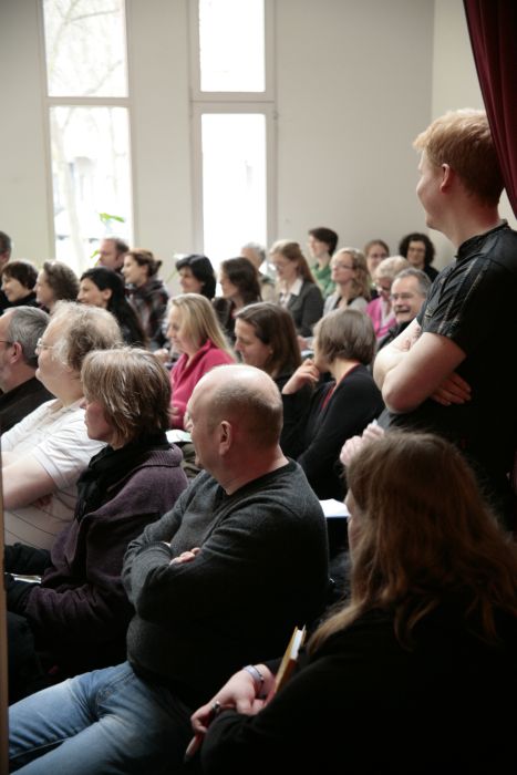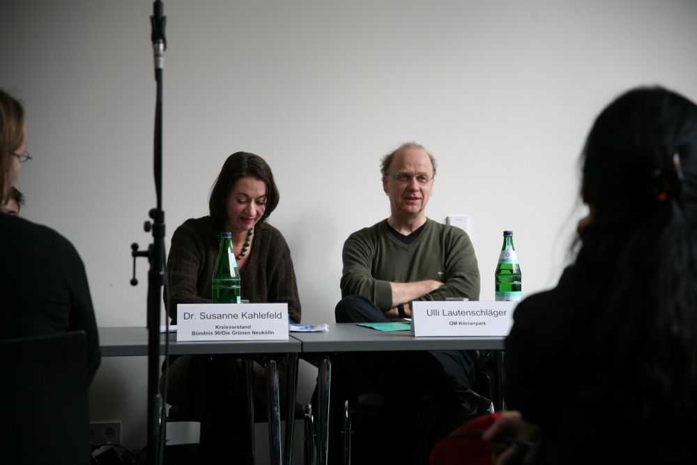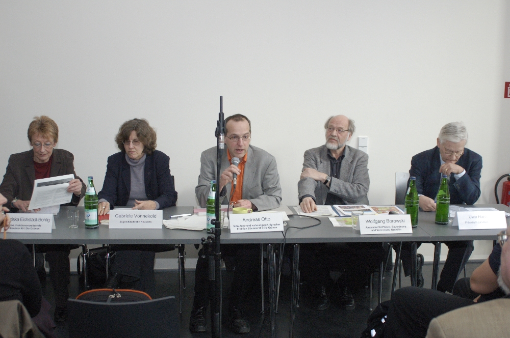 Nach der Begrüßung durch die Fraktionsvorsitzende im Abgeordnetenhaus Franziska Eichstädt-Bohlig und die Neuköllner Jugendstadträtin Gabi Vonnekold schilderte Daniel Förste in Vertretung des erkrankten Professors Hartmut Häußermann die Ergebnisse der beiden Studien zur sozialen Lage in Neukölln, die in unserem Bezirk bereits für viele Diskussionen gesorgt haben. Doch die Zahlen erschrecken immer wieder: Die sozialen Probleme sind im Norden Neuköllns doppelt so hoch wie im Berliner Durchschnitt, mehr als 70% der Kinder in Neukölln sind von staatlichen Transferleistungen abhängig – ein deutschlandweit fast einmaliger Wert. Daniel Förste bezeichnete die Herstellung von gleichen Chancen – vor allem von Bildungschancen – als eine der wichtigsten Aufgaben: "Der Norden Neuköllns muss eines der Vorranggebiete Zukunftssicherung werden – das heißt man sollte versuchen, Ressourcen in diesen Gebieten zu konzentrieren und diese vor allem im Bereich Bildung." Wichtig dafür sei eine integrierte Stadtentwicklung über traditionelle Ressortgrenzen hinweg und nicht nur Einzelmaßnahmen. Es gelte, die begonnenen und berlinweit einmaligen Innovationen durch die Vielzahl von Projekten und Initiativen in Neukölln zu verstetigen und von der Förderung nur einzelner Leuchttürme wegzukommen. Ein Schwerpunkt der anschließenden Diskussion war die Verteilung und Verstetigung der Mittel sowie die oft fehlende Kontinuität des Personals in Projekt- und Ehrenamtsstrukturen. Gabi Vonnekold erhielt viel Applaus für Ihre Feststellung: "Was uns fehlt, sind nicht wirklich noch mehr Fördermittel, sondern was uns fehlt, sind Mittel für die Regelfinanzierung". Der Jugendverwaltung fehle schlicht das Geld um funktionierende Projekte in die Regelfinanzierung zu übernehmen: "Von daher haben wir immer wieder den Kreis: Kluge Menschen erfinden ein Rad, trimmen es drei Jahre bis es absolut rund läuft und dann tragen wir es in den Keller, weil wir es nicht mehr weiterfinanzieren können."